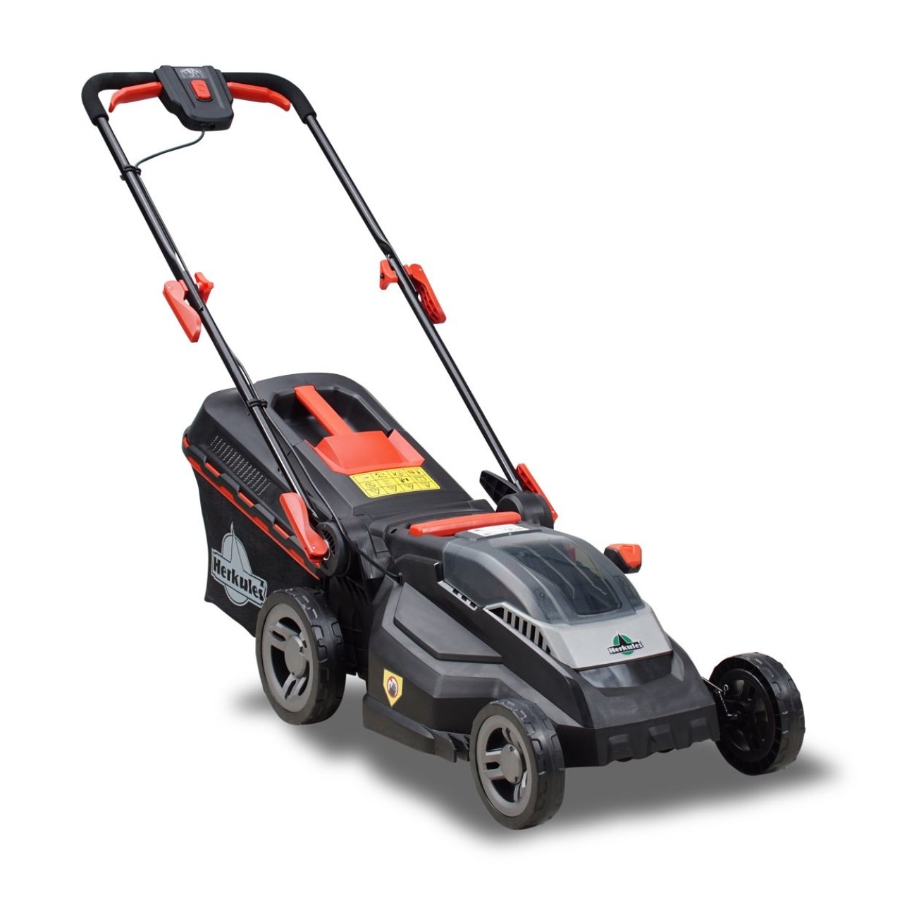 Der Herkules Akku-Rasenmäher MLS-B 38 40V bietet eine Schnittbreite von 38cm und eignet sich so für kleine Rasenflächen. In das Kunststoffgehäuse sind Fangsystem und eine zentrale Schnitthöhenverstellung per Hebel integriert.