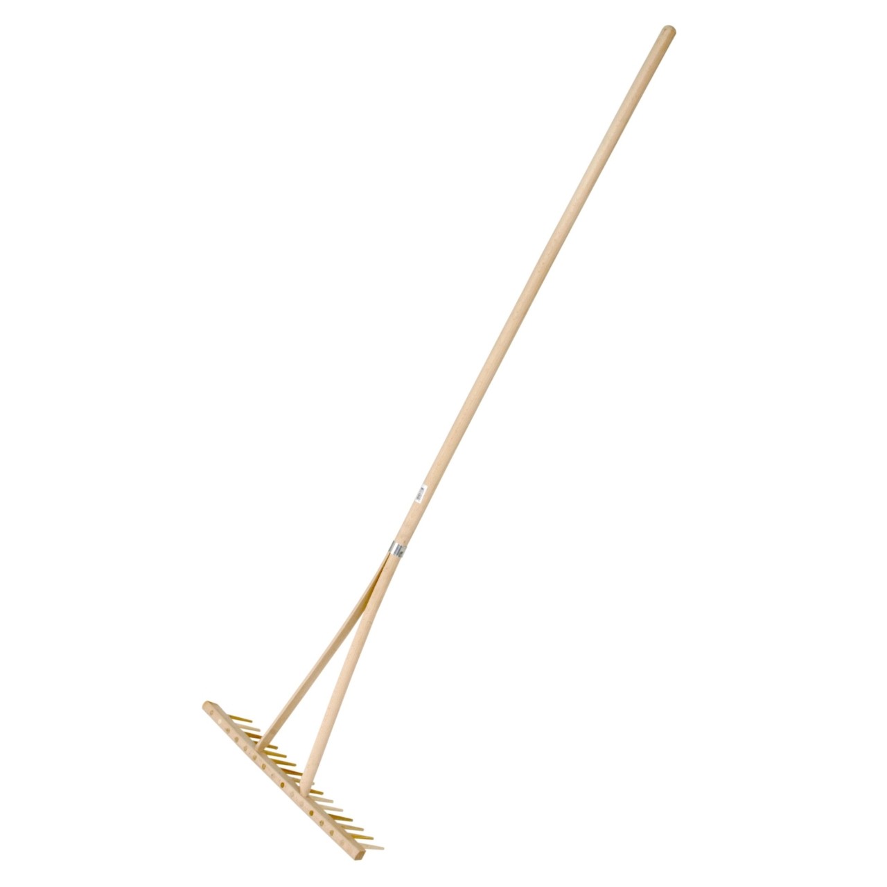 Holzrechen 14 Zinken, mit gespaltenem Stiel. Breite: 47,5 cm