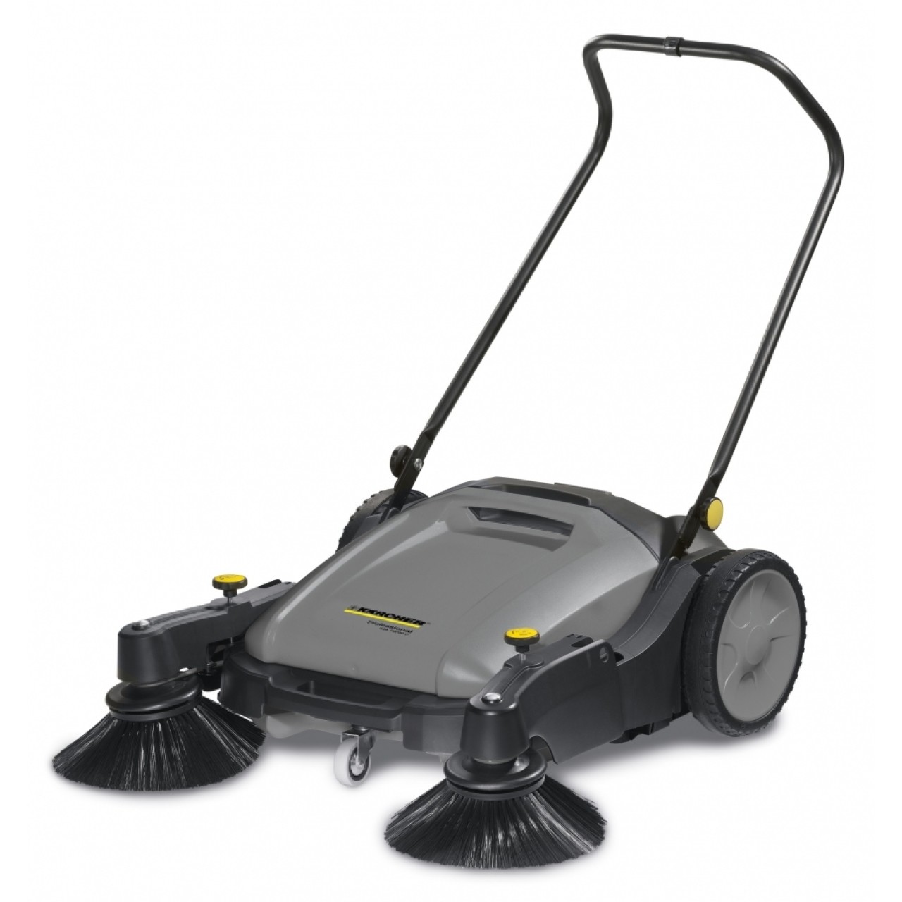 Handkehrmaschine für die einfache und mühelose Reinigung von Außenflächen. Sechsmal schneller als der Handbesen. Nahezu staubfreies Kehren durch kontrollierte Luftführung und Filterung. Seitenbesen wegklappbar. Hauptkehrwalze höhenverstellbar und somit Anpassung an verschiedene Bodenarten. Beidseitiger Antrieb der Hauptkehrwalze. Schubbügel klappbar und in 3 verschiedenen Höhen einstellbar. Serienmäßig mit 2 Seitenbesen.