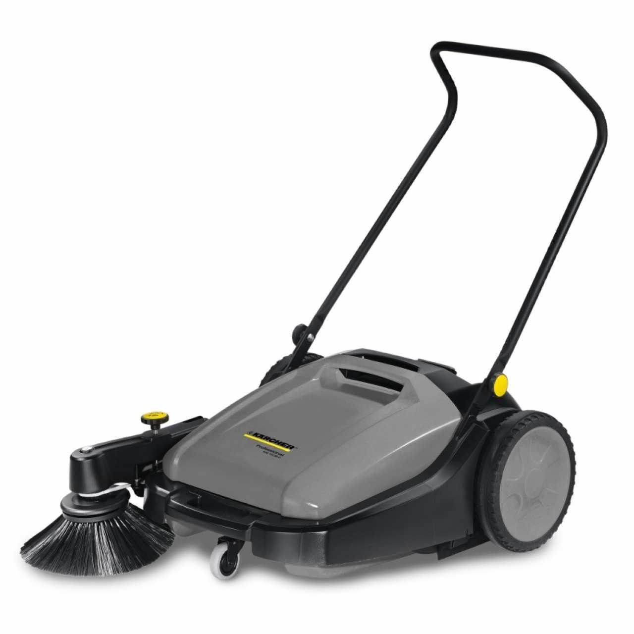 Handkehrmaschine für die einfache und mühelose Reinigung von Außenflächen. Sechsmal schneller als der Handbesen. Nahezu staubfreies Kehren durch kontrollierte Luftführung und Filterung. Seitenbesen wegklappbar. Hauptkehrwalze höhenverstellbar und somit Anpassung an verschiedene Bodenarten. Beidseitiger Antrieb der Hauptkehrwalze. Schubbügel klappbar und in 3 verschiedenen Höhen einstellbar.
