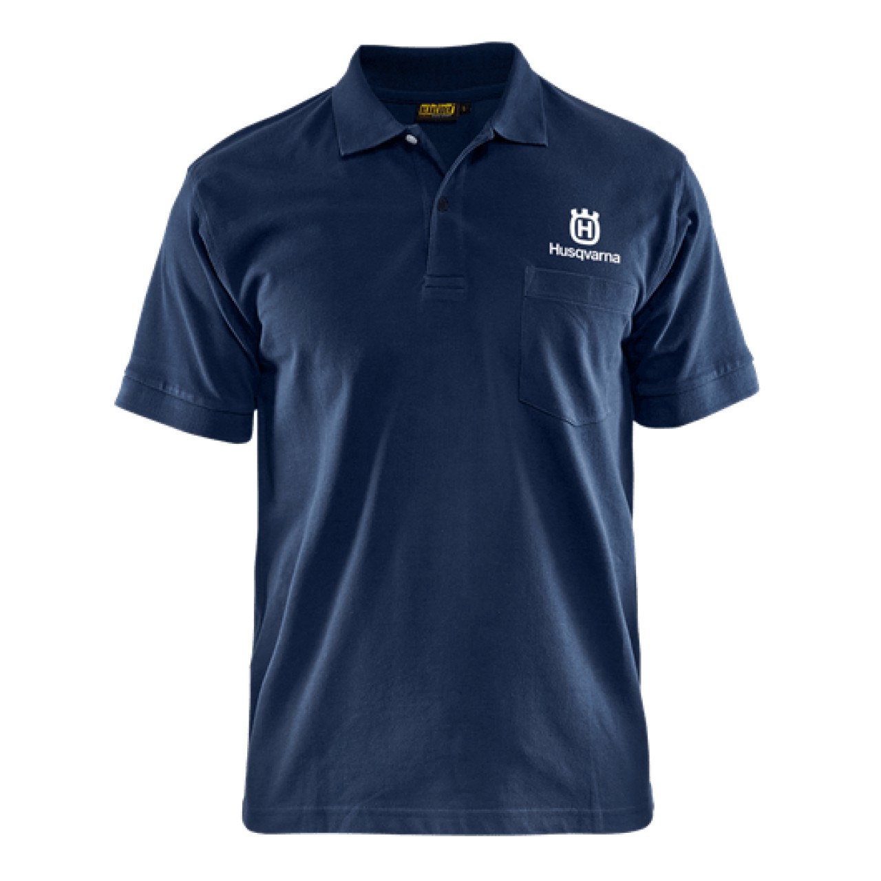 Schönes Poloshirt für Herren mit Brusttasche und geripptem Strickkragen. Mit Husqvarna Logo.