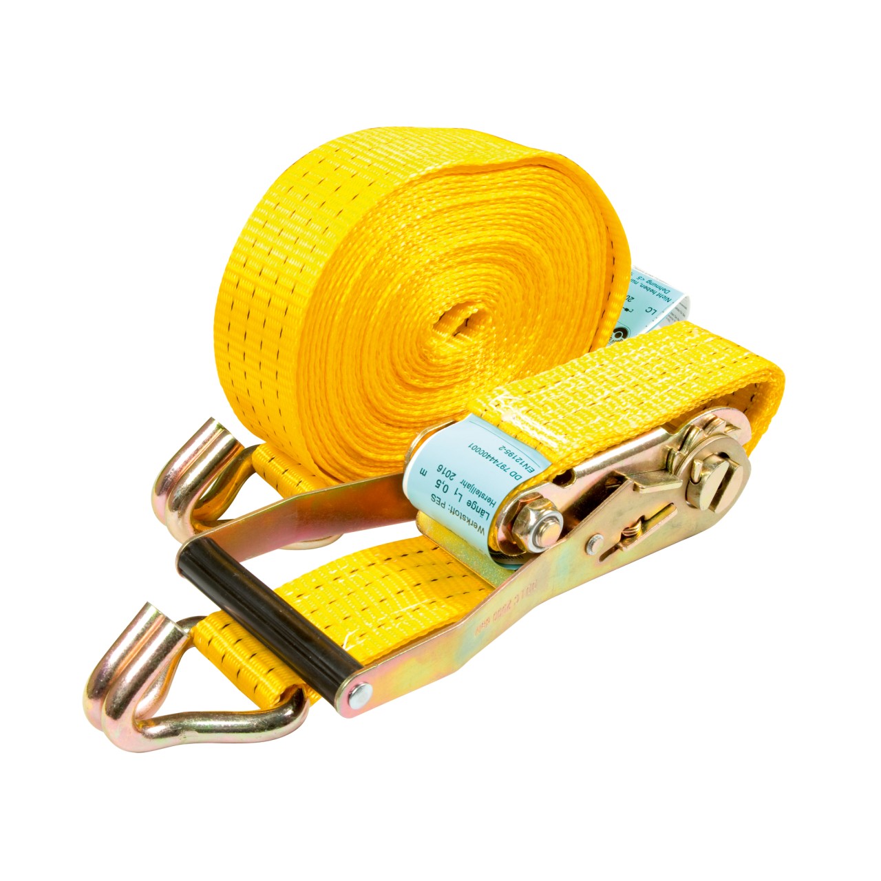 Zurrgurte gelb 2teilig mit Greenbase Logomit DruckratscheBandbreite 50 mm / Länge 8 mU 4000 daN / LC 2000 daNmit Profilhaken
